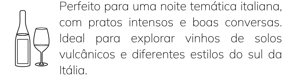 Essa coleção reúne três rótulos produzidos nas encostas do Etna, o vulcão mais ativo da Europa e um dos terroirs mais desejados do mundo. O Nicosia Grillo é um vinho branco com acidez vibrante e vivacidade de aroma e sabor. O Lenza di Munti Etna Rosso é vinho tinto macio, com grande mineralidade e final intenso frutado. E o Nicosia Malvasia Terre Siciliane Liquoroso – 500ml é vinho branco doce, com notas de damasco, aveludado e elegante. E completa a coleção o Aglianico del Vulture Casa Maschito, cultivado nas colinas de um antigo vulcão extinto, o Monte Vulture, na região da Basilicata. Cada garrafa é uma expressão autêntica do terroir vulcânico italiano. Um tributo aos vinhos que nascem de solos moldados pelo fogo e pela força da natureza.